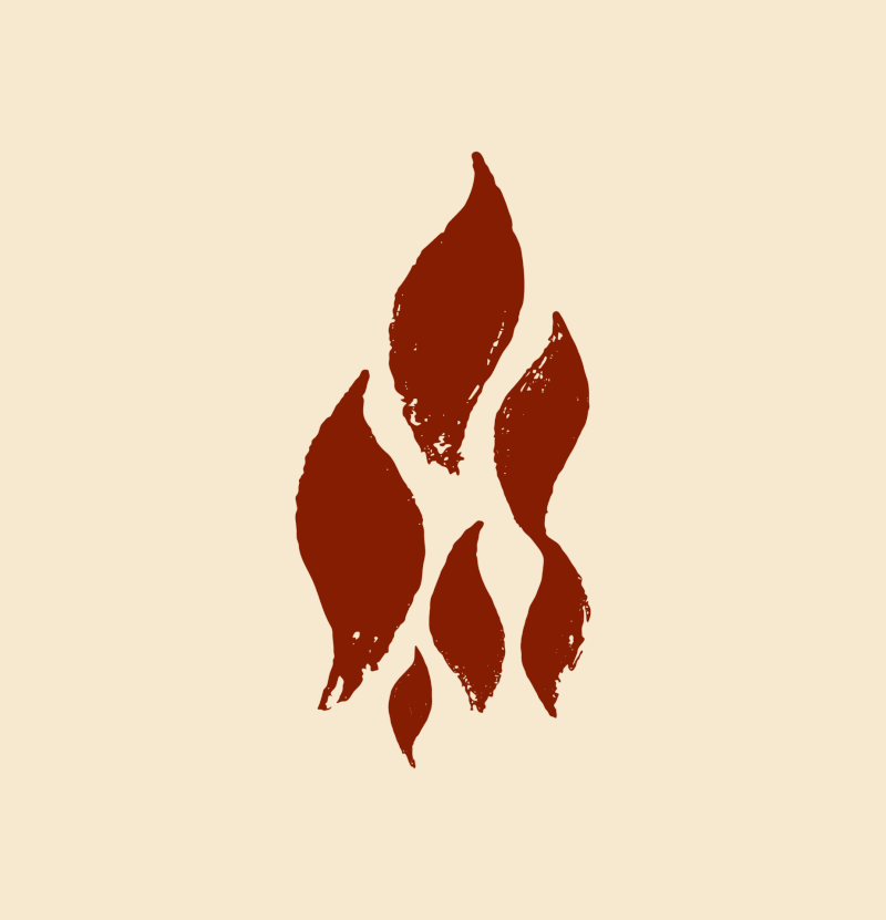 - Illustrations: Created custom illustrative distorted frames for the menu and key brand applications, adding a tactile and expressive layer that complements the warmth and movement of fire.